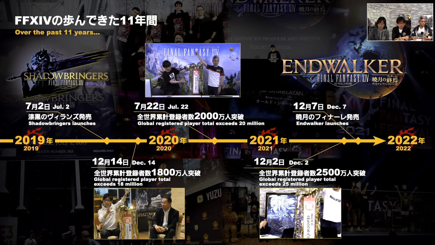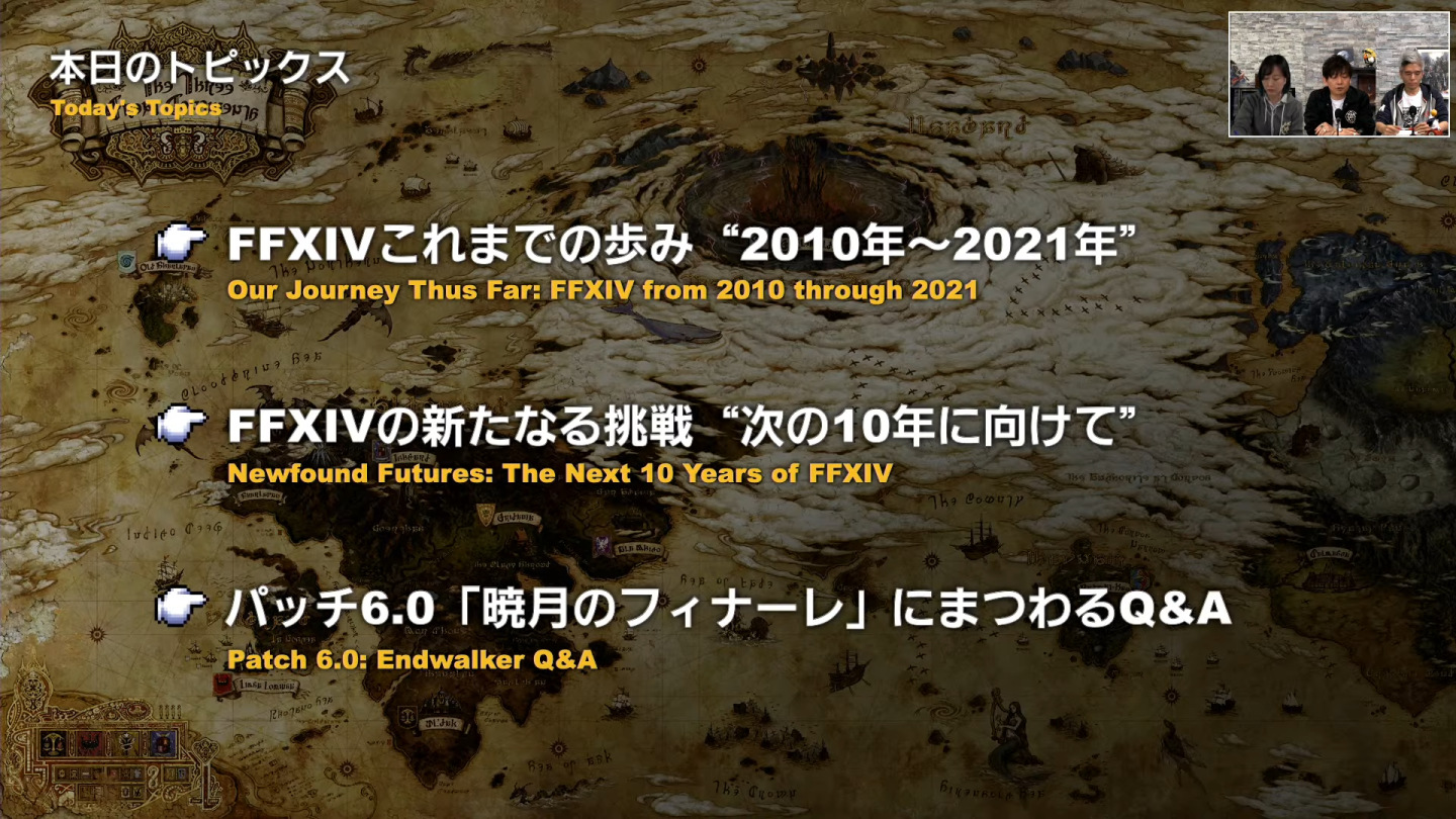「FINAL FANTASY XIV Letter from the Producer LIVE Part LXVIII」現在正在進行中,主軸將回顧《FF14》 2010 年起,歷經 11 年的遊戲改版里程碑,以及在世界各地巡迴的大型社群線下活動,並將揭露未來 10 年的願景與挑戰,最後將針對 6.0 資料片 《曉月的終焉》進行線上 QA 問答,若有相關重大消息公開,本站將後續追蹤報導。