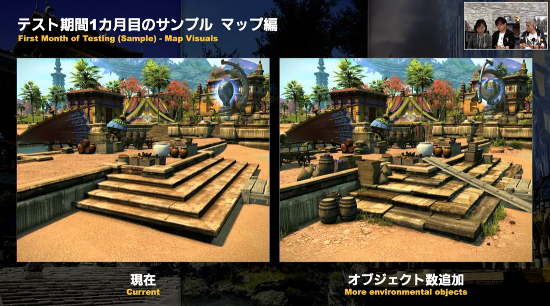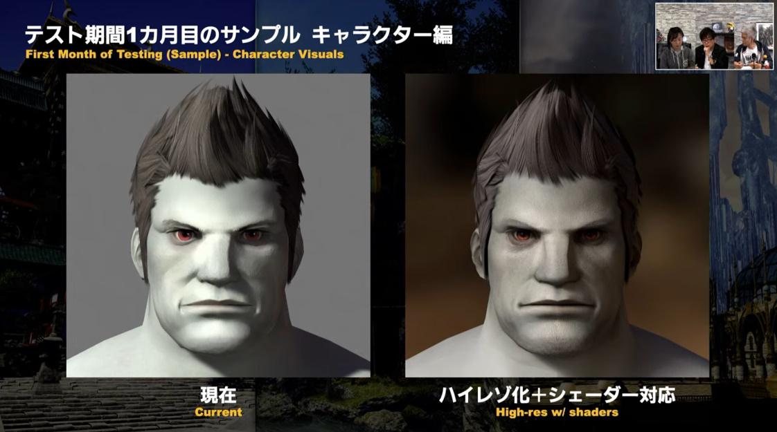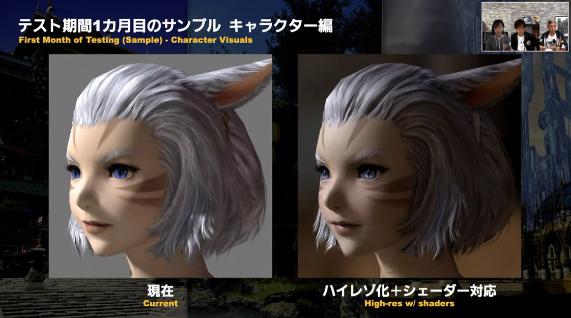 吉田也在直播中展示了團隊努力了一個月的開發成果,強調不會以太逼真的方式提升畫質,角色的部分可以看到透過高解析處理後,眼睛與髮絲都和現行版本有很明顯的差別,而所有種族中最難調整的就是拉拉菲爾,要如何在寫實與可愛之間拿捏就要看團隊怎麼處理了。