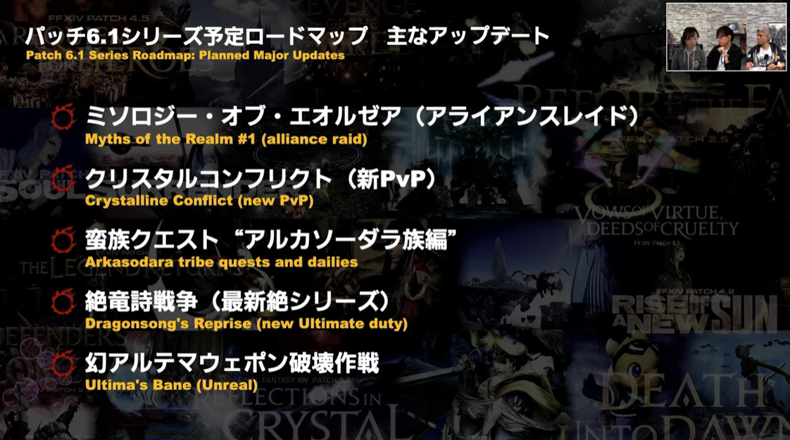《FF14》今(19)日舉辦資料片《曉月的終焉》上線後的首次開發團隊與玩家的直播活動「FINAL FANTASY XIV Letter from the Producer LIVE Part LXVIII」,在前半部的部分,遊戲總監吉田直樹針對《曉月的終焉》後續更新路線圖以及對於未來十年的願景以挑戰進行說明。