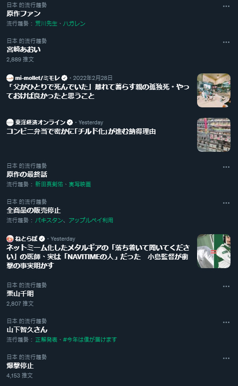 可以看到除了演員名字登上趨勢外,接著就是「原作粉」這個詞,相關聯的則是「荒川老師」、「鋼鍊」
