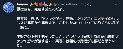 有原作粉絲說「會對真人版鋼鍊拍續集覺得開心的只有傑尼斯粉而已啦」,