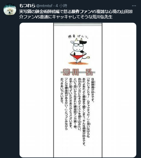 對真人版鋼之鍊金術師聲氣的原作粉絲VS心情複雜的山田涼介粉絲VS就只是很興奮的荒川弘老師