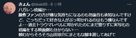 原作粉的厭惡那麼明顯大家都看得出來,但也有喜歡作品的人被攻擊後轉而討厭這部作品
