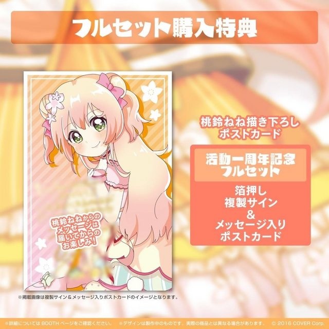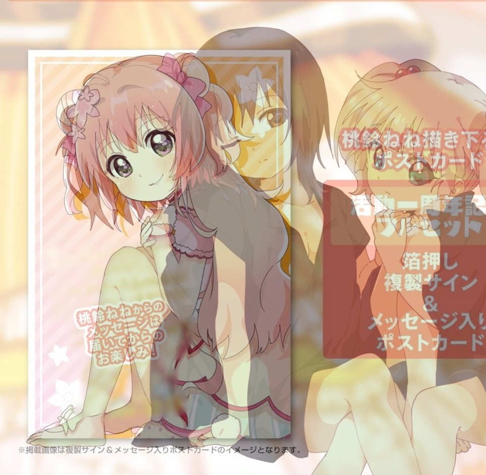 桃鈴音音活動一週年的明信片圖案與 Namori 老師插畫比對