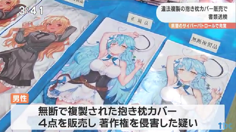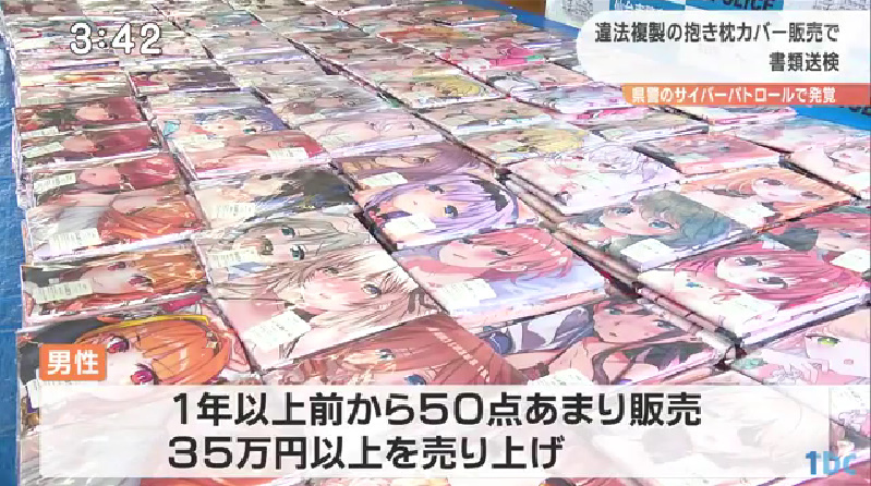 據日媒報導,宮城縣警方的在進行網路巡邏時發現一名住在北海道的 22 歲失業男子,未經許可擅自印製了 Vtuber 事務所「Hololive」旗下 Vtuber 們的抱枕套並進行販賣,查獲的數量多達 490 件,該名男子在過去一年間就賣出約 50 件商品,獲得的不法收益超過 35 萬日圓,對此男子表示他只是想要賺零用錢而已。Cover 於公告內表示未來將繼續協助相關機構,在揭發與打擊違法行為上努力。