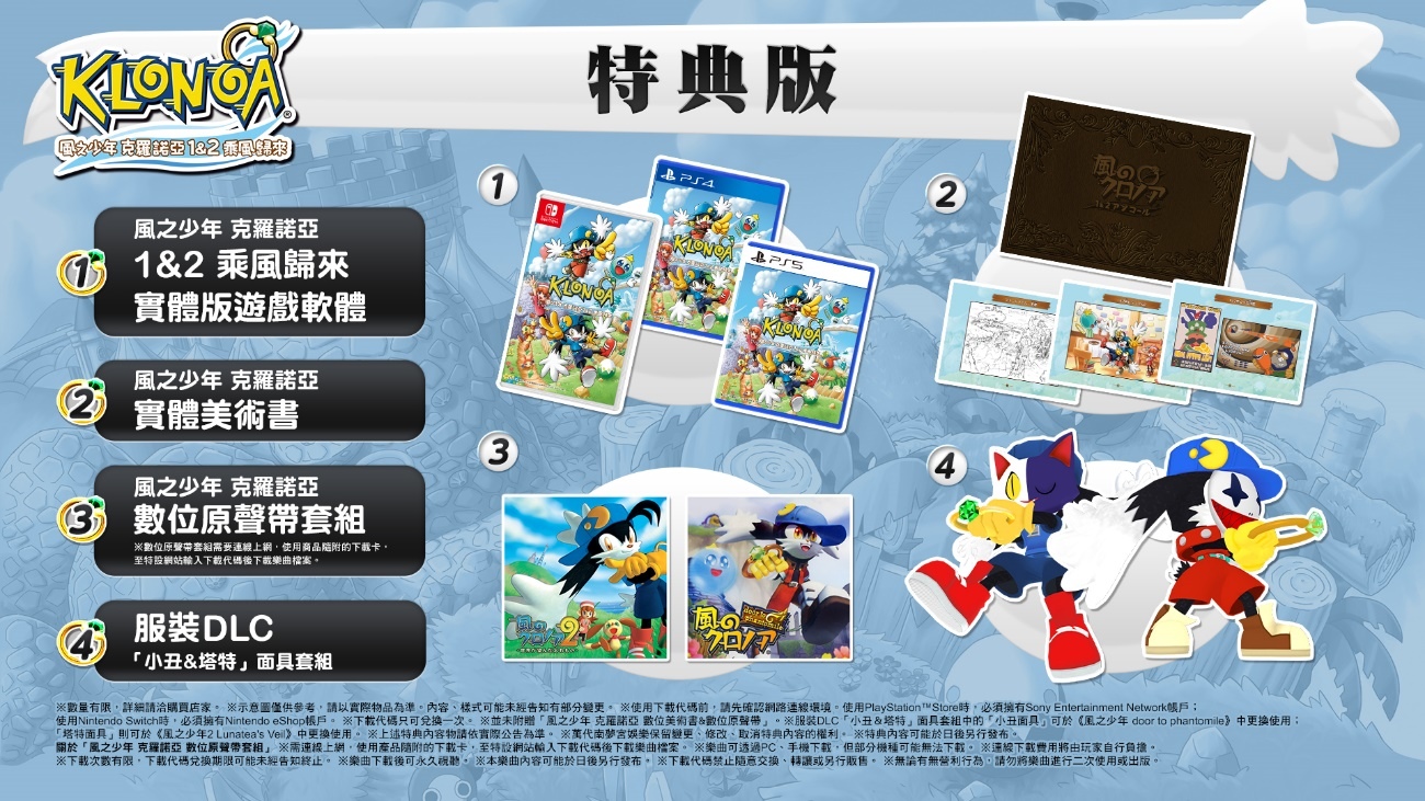《風之少年 克羅諾亞1&2 乘風歸來》Nintendo Switch、PS5、PS4特典版收錄以下內容: