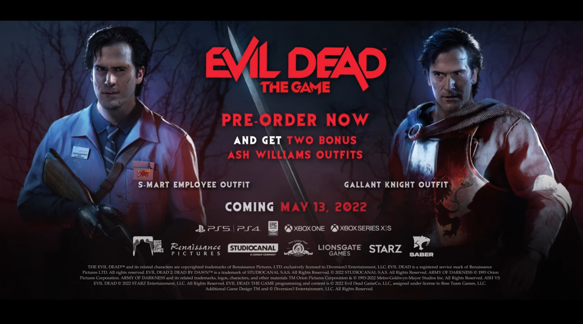 《Evil Dead The Game》現已開放預購,凡是參加預購的玩家在遊戲發售後可以獲得兩套 Ash 的特別服裝,此外豪華版將包含第一季季票,裡面有四個預定推出的 DLC 內容,想要回味當年電影版的驚悚與恐懼的玩家趕快去預約吧!