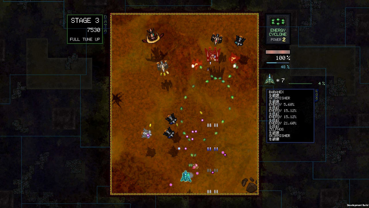 不過本作不同於一般射擊遊戲的是,在遊戲一開始的時候,由於我方機體並沒有任何能源,因此也無法射出能量彈來進行攻擊;這時候玩家須要活用機體上搭載的「Absorb」系統來承受敵人射出的能量彈攻擊,將對方的能量彈轉變為我方的能源,如此一來才能有足夠能源發射能量彈來將敵人破壞清關。