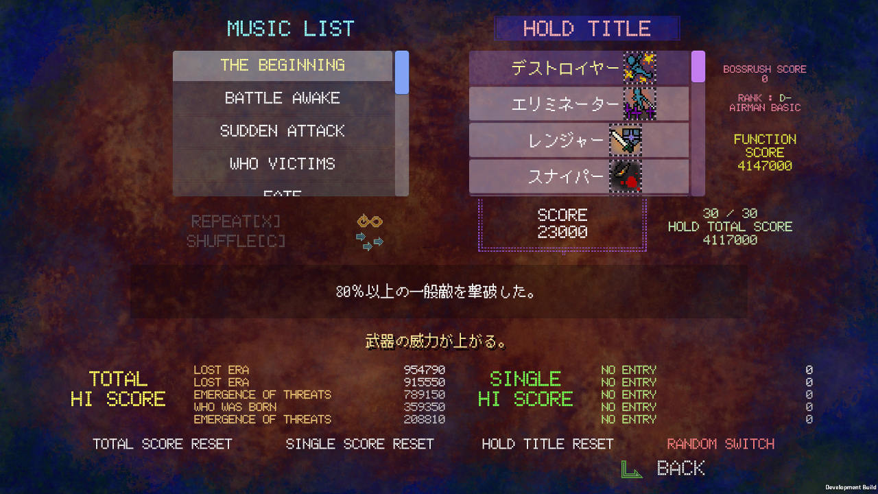 除此之外,本作除了將會提供以主線劇情為主的「StoryMode」故事模式、需要運氣的「RandomStage」隨機關卡、以及可以無止盡戰鬥到死的「BossRush」頭目討伐等多種模式讓玩家們體驗外,在故事與 BGM 上也會有不同的四階段難易度可以選擇;另外還將會導入能夠提供玩家各種能力加成,需要滿足各種條件(如滿足條件過關、將 80%以上的敵人擊破、駭入 20 隻以上敵人等等)才能入手的稱號系統等豐富內容,玩家們可以來多加挑戰,活用這些稱號讓自己過關更加事半功倍!