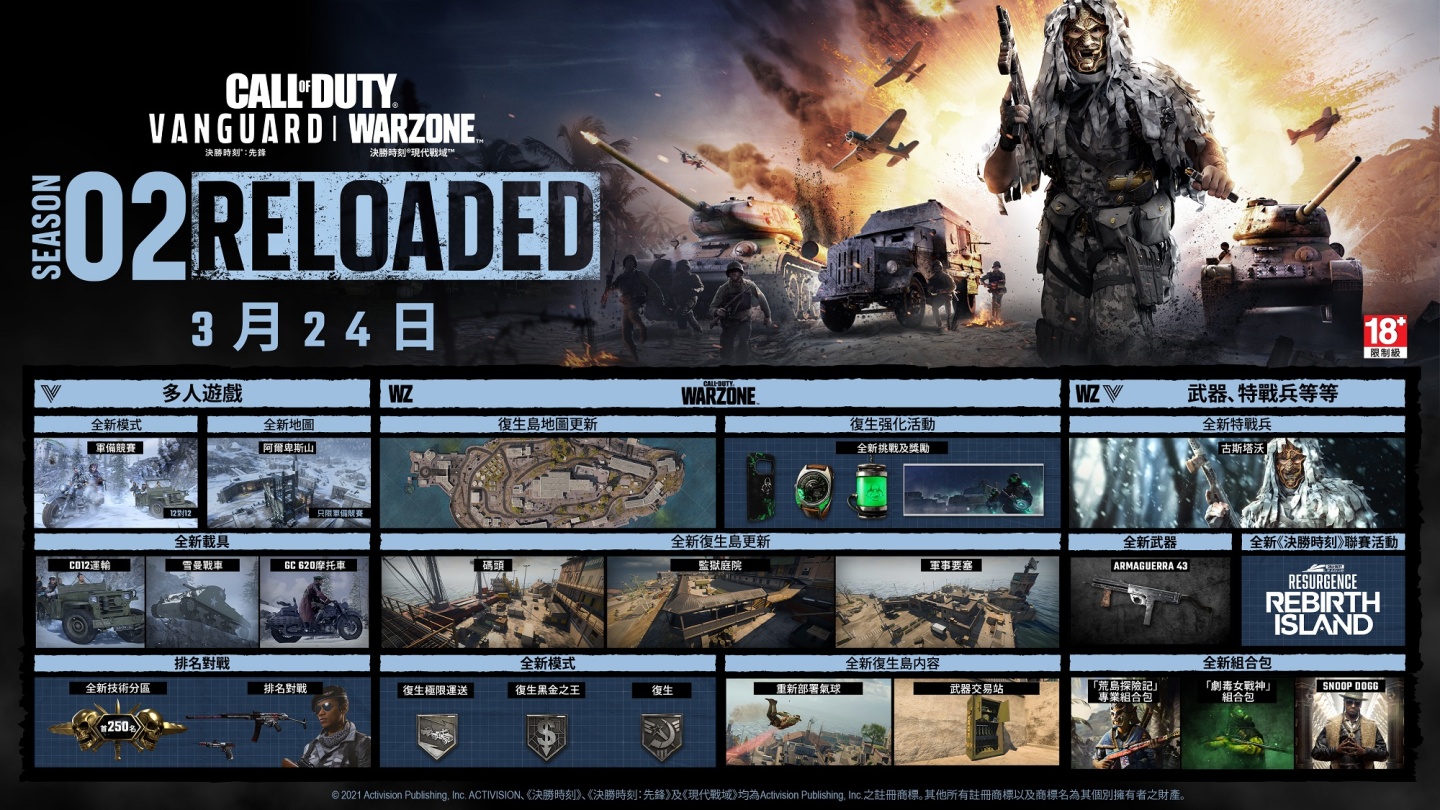 更多關於《決勝時刻:先鋒》與《決勝時刻:現代戰域》第二季再起詳細資訊,可參閱第二季再起預告影片、第二季再起官方部落格文章(英文)、和《現代戰域》復生強化指南部落格。