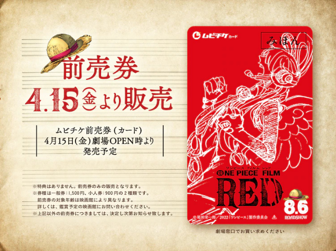 這位全新角色頂著半紅半白的髮色,還似乎以頭髮做成了耳機?!衣服也以紅、粉、白為主題色,背後有著奇妙的標誌。隨著少女一起出現在海報上的宣傳詞是「吶、魯夫,別當海盜了吧」,令人相當在意少女的來歷......!4/15 起預售票將開始販售,票面將是畫著謎之少女草圖的紅色前導海報款。
