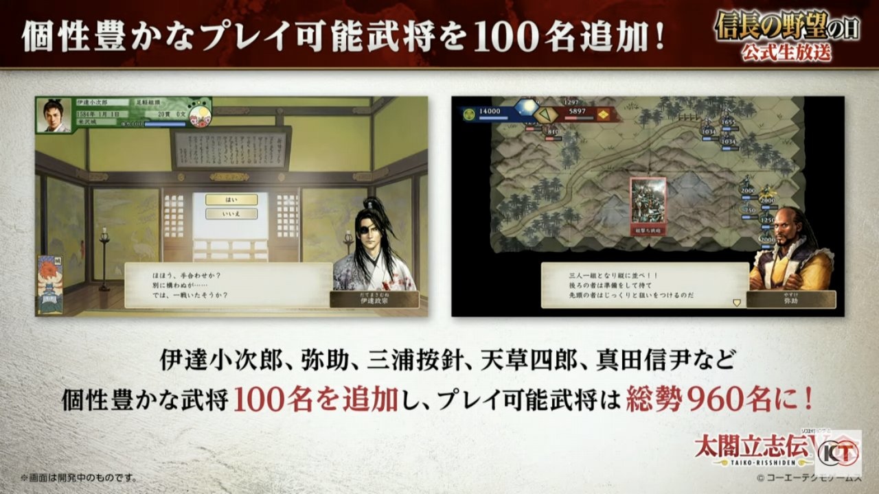 另外,本次還將會追加超過 20 個以上,包括四國統一開始到九州征伐、小田原評定等在內,描述武將們活躍模樣的新史實事件登場,讓玩家們透過新事件的登場,來確認戰國時代各地勢力榮枯盛衰的興亡發展。