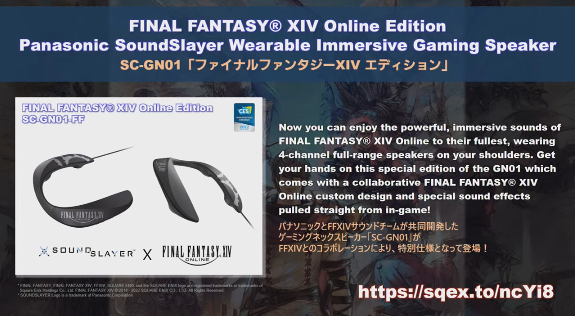 除了上述更新內容以外,還宣布了《FF14》專屬樂團演唱會「THE PRIMALS Live in Japan」預定 6 月 4、5 日在日本幕張展覽館舉辦,還有迷你專輯、《曉月的終焉》畫冊與 Panasonic 合作的頸掛式音響,此外在正式改版前一天將舉辦 Patch Note 朗讀會,在等待更新結束前別忘了與吉田製作人一起看完整的 Patch Note 吧!