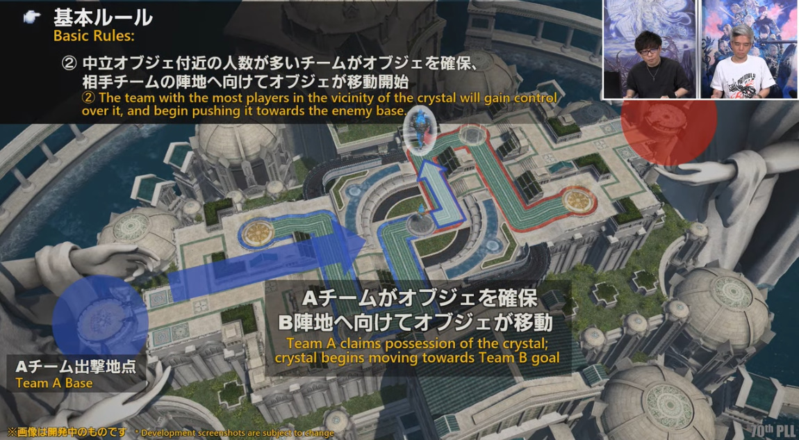 參加的玩家職業不可重複,會有階級區分,申請加入的時候會以階級來搜尋隊友與對手,基本規則為在地圖兩側的隊伍,移動到中間搶奪中央水晶,當其中一隊確保水晶後,將它推到對手陣營就獲勝。雙方都有人站水晶的話就會暫停移動,直到其中一方有人員陣亡讓水晶可以移動為止,陣亡次數越多的話時間會遞增,如果五分鐘的戰鬥時間無法分出勝負,就會以水晶的位置來決定贏家。
