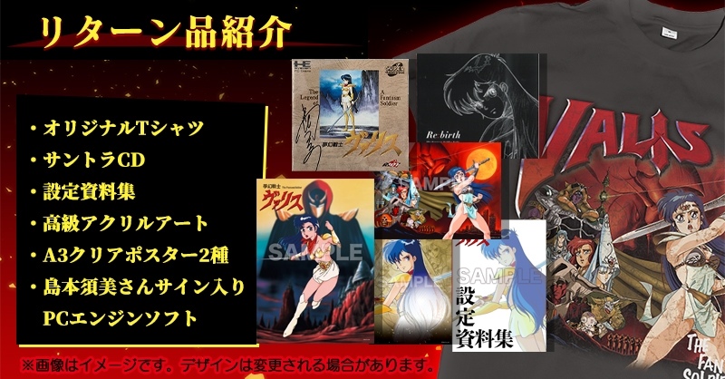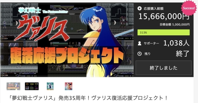 而在這次「夢幻戰士復活應援企劃第二彈」的收錄遊戲方面,將因應粉絲們的要求,繼之前將系列作三部曲《夢幻戰士1.2.3》同梱的《夢幻戰士收藏合輯》後,這次的《夢幻戰士收藏合輯2》,將會把玩家們期待的 PC Engine 版《夢幻戰士4》(ヴァリスIV)、MD 版《SD夢幻戰士》(SDヴァリス)與 MD 版《夢幻戰士》(夢幻戦士ヴァリス)同梱復刻。附帶一提,本次募款目標 5,000,000 日圓,截稿已有 85 人贊助,募款金額 2,180,000 日圓。