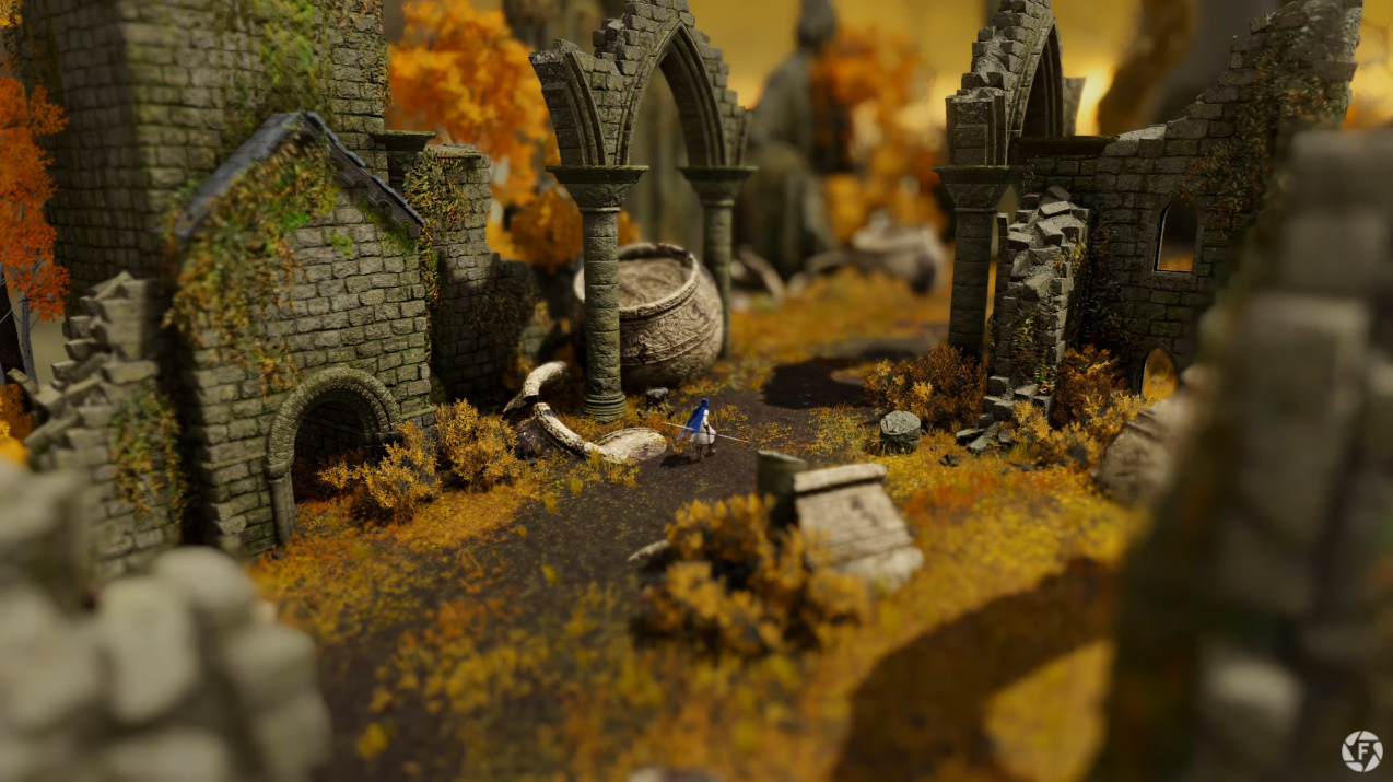 來自 YouTuber Flurdeh 的創作,透過模組修改解鎖遊戲視角限制後,以移軸攝影的形式來探訪《艾爾登法環》用另類風格呈現許多玩家熟知的區域,還透過低幀數的錄影形式來進行錄製,藉此賦予遊戲角色動態近似定格動畫風格。