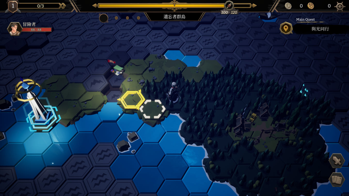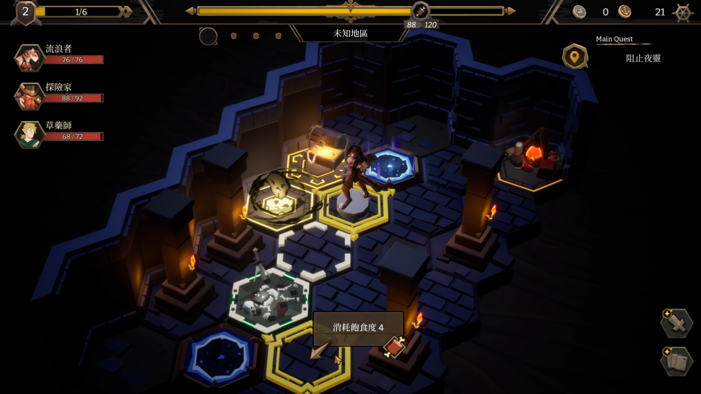 遊戲的基本玩法分為探索與戰鬥,在探索模式下採用類戰旗的移動介面,玩家此時要留意飽食度與生命值,探索移動會消耗飽食度,因此得在歸零之前,找尋可以補給糧食的據點。
