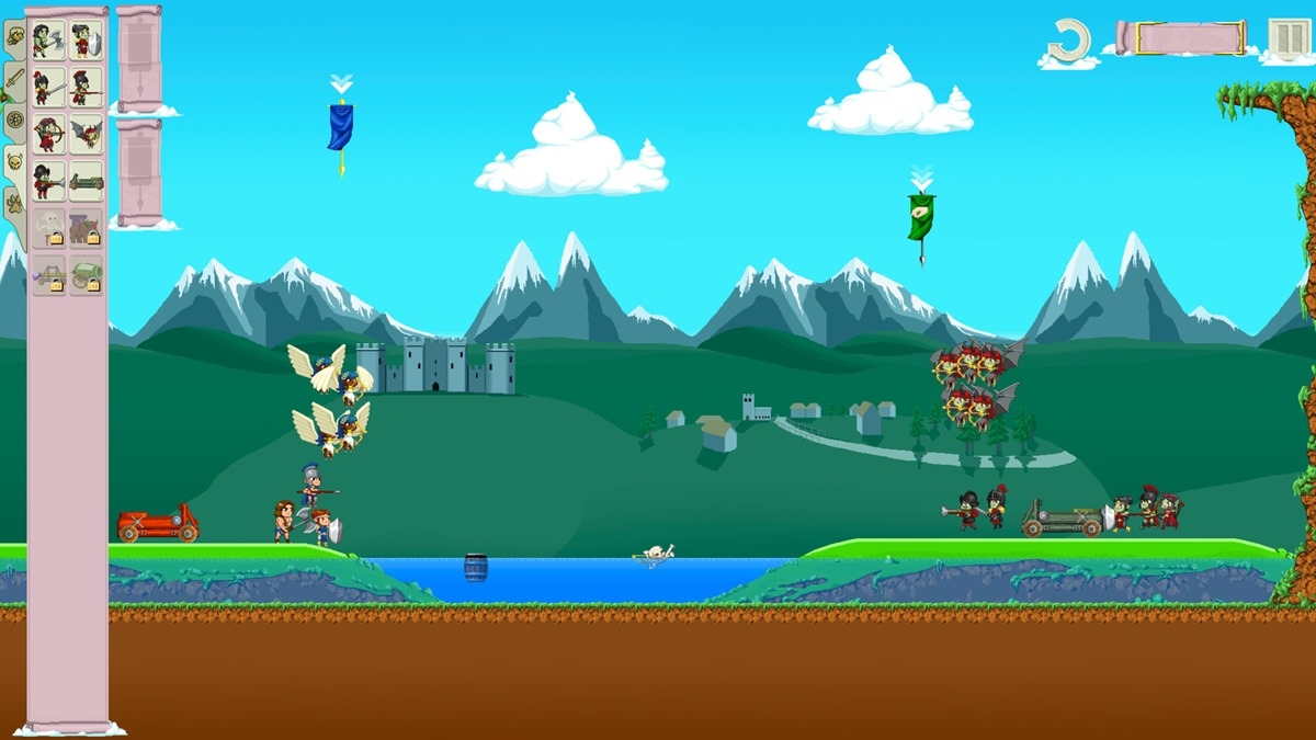遊戲中,每個單位都有各自不同的使用武器與優勢/弱點,玩家需要巧妙配置單位,透過各單位間的互相協力合作來守護我方陣營神殿,或是將敵人陣地的神殿破壞來贏取勝利才行!另外在戰鬥中,還將會觸發各種透過物理演算展開的事件登場,例如像是火災、洪水、死靈大軍等等各種突發狀況。而且玩家還可以針對敵人建築或是投石器等進行攻擊破壞,或是乾脆將我方士兵透過投石器彈射出去直接深入敵陣撞飛敵人,各種有趣的策略玩法與突發事件,都讓戰況變得更加有趣!
