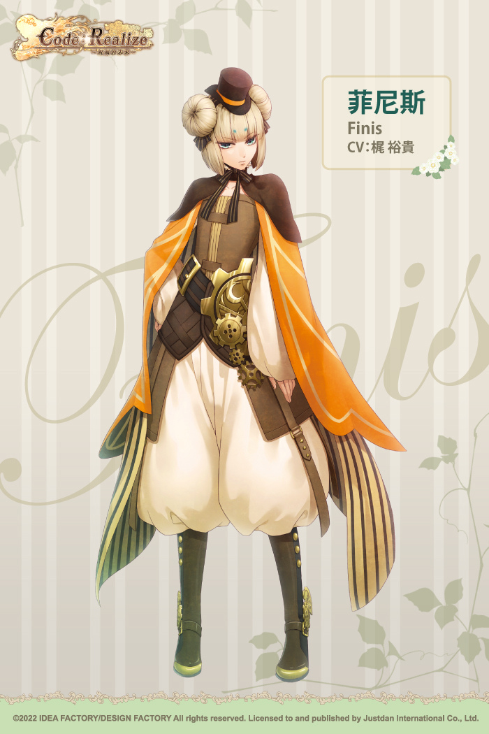 發行商傑仕登宣布,由 Idea Factory 旗下乙女遊戲品牌「Otomate」出品,曾於 2018 年改編成動畫的人氣作品《Code︰Realize 〜創世的公主〜》,其具備豐富追加劇情以及後日談的 Fan Disk《CodeRealize〜祝福的未來〜》將於 2022 年 6 月 23 日於亞洲推出繁體中文版。今(25)日將公開主要角色介紹。玩家們可以好好享受本篇結束後,與各位紳士們相處的後續故事發展;同時也可以體驗本作中新追加的兩位可攻略角色——菲尼斯以及海爾洛克・夏爾摩斯的故事。