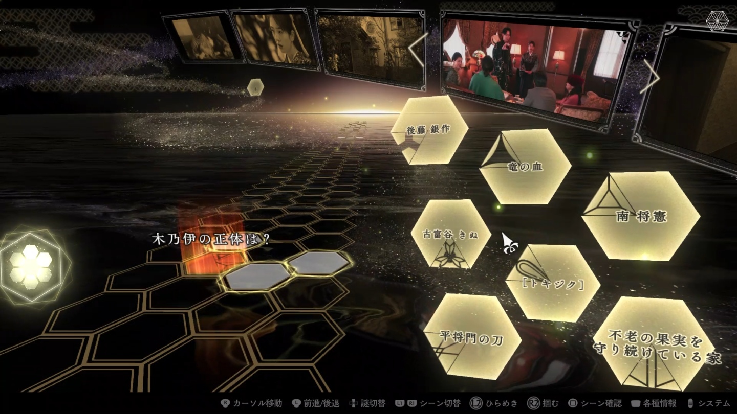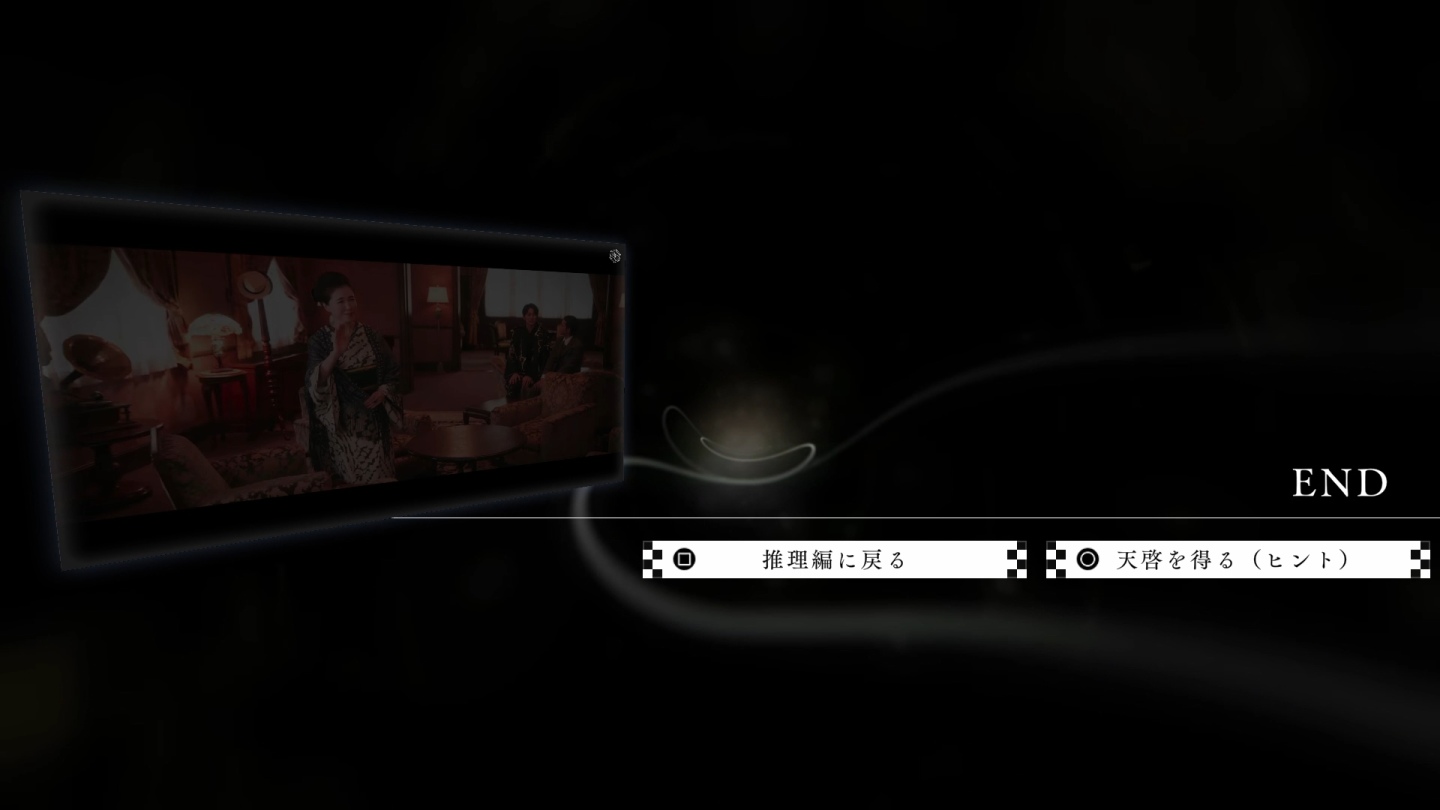 即使推理陷入僵局並進展為 BadEnd 也不用擔心,玩家還可以藉由名為「獲得天啟」的提示功能來一窺接下來場景中的零碎畫面。只要不放棄,就一定能夠見證故事的結局。(※若使用此功能,推理評價會下降。)