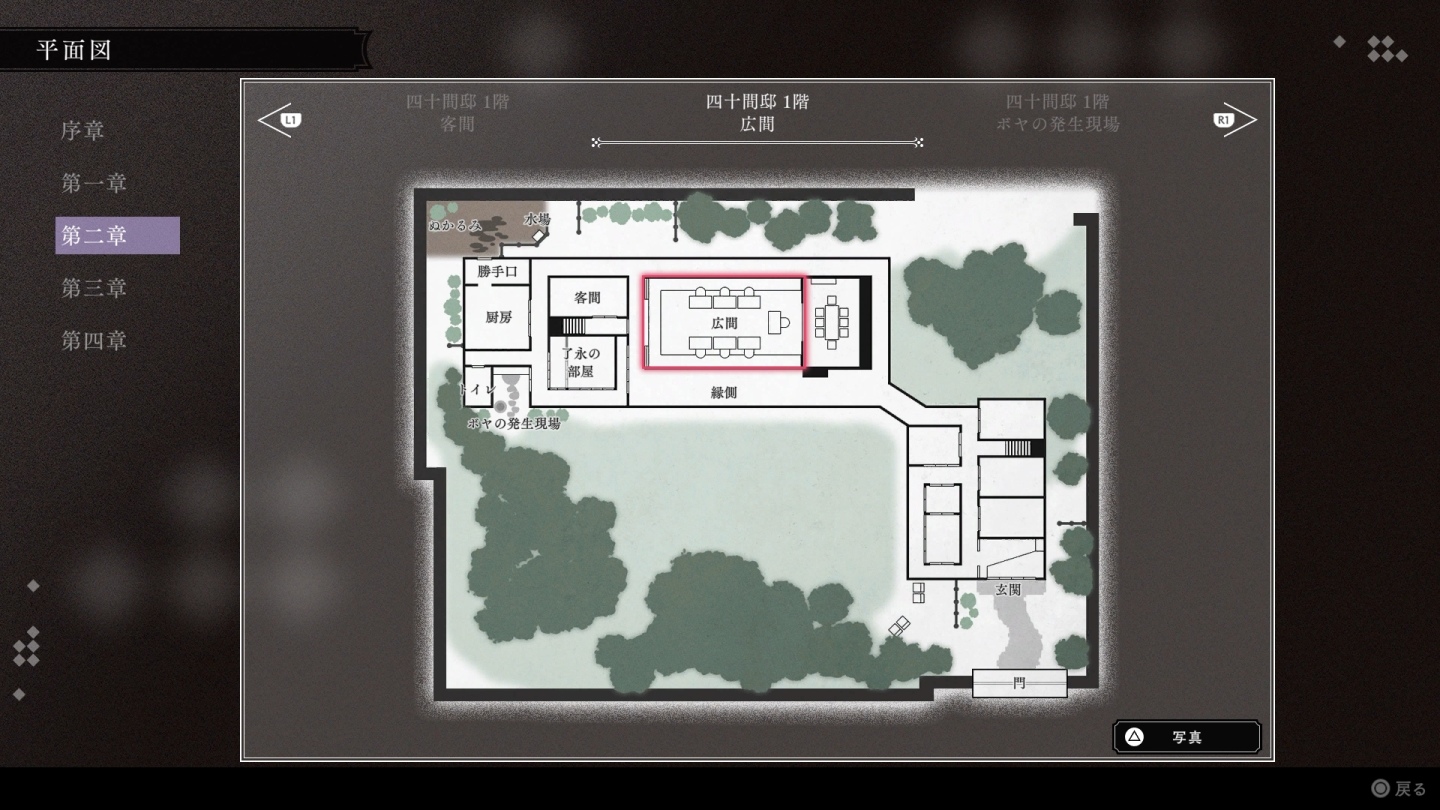 玩家可以在平面圖中確認案發現場的周邊區域。若對位置關係等部分有所疑問,可以多加運用。