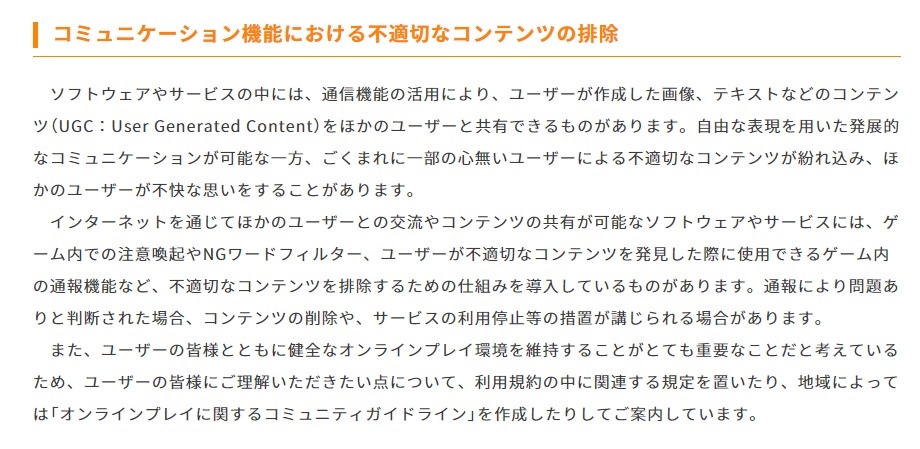 在 2021 年任天堂公開的企業社會責任(CSR)報告中,提到作為「讓客人歡笑」願景的一部份,將為旗下遊戲以及服務引進「NG 詞彙過濾器」,實際上在 3DS 手冊中有說明「NG 詞彙表」會隨著主機更新變動,Nintendo Switch 在 10.2.0 版本中也增加了「用戶名稱的禁用詞」,像是「KKK」或「COVID」等等。