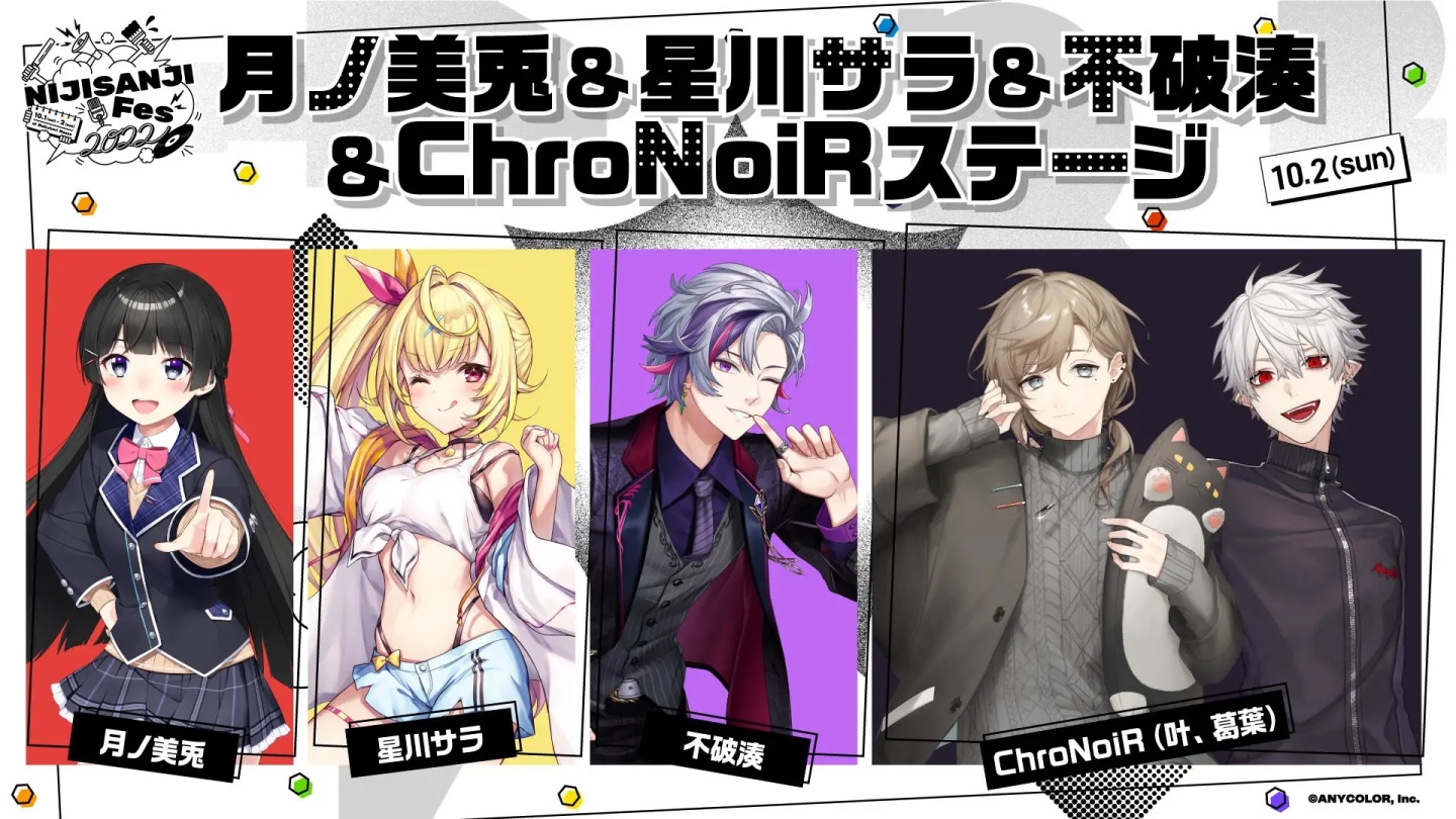 10 月 2 日舞台活動:彩虹社的 B 級綜藝舞台、月之美兔&星川莎拉&不破湊&ChroNoiR 舞台
