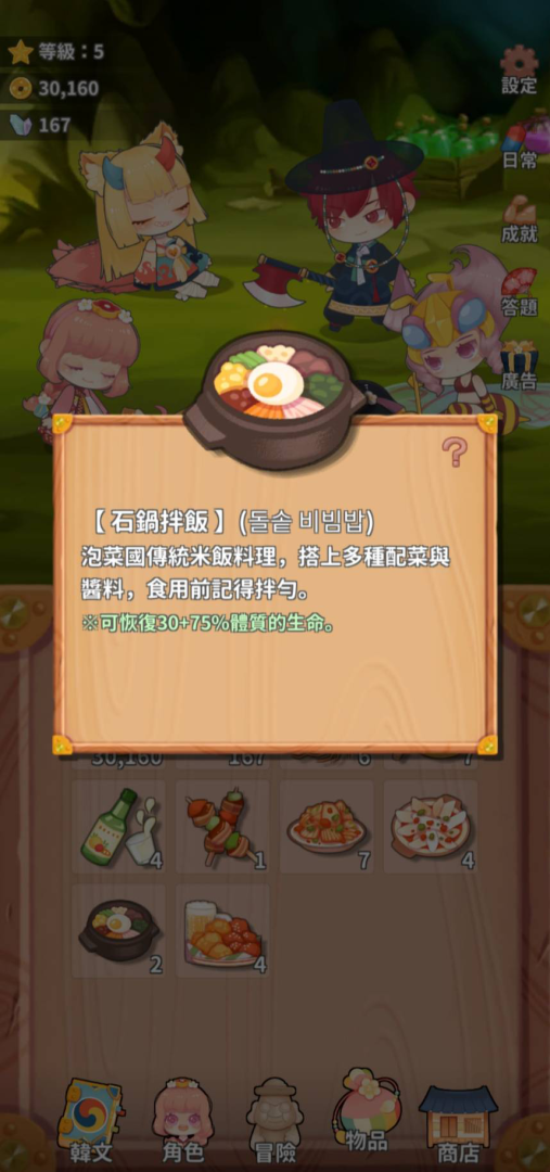 此外,遊戲不僅讓玩家可以邊學邊玩,在內容也融入許多有韓國風格的魔物、道具、介面,例如:經常被稱作「將軍魔碑」的韓國守護神「長丞」、韓劇中經常出現的「韓式炸雞配啤酒」與「人蔘雞湯」等,甚至在韓文學習的語音,也請到韓籍男女聲優配音,讓玩家不僅能體驗韓國背景,且學習到的每個發音都是最道地的。