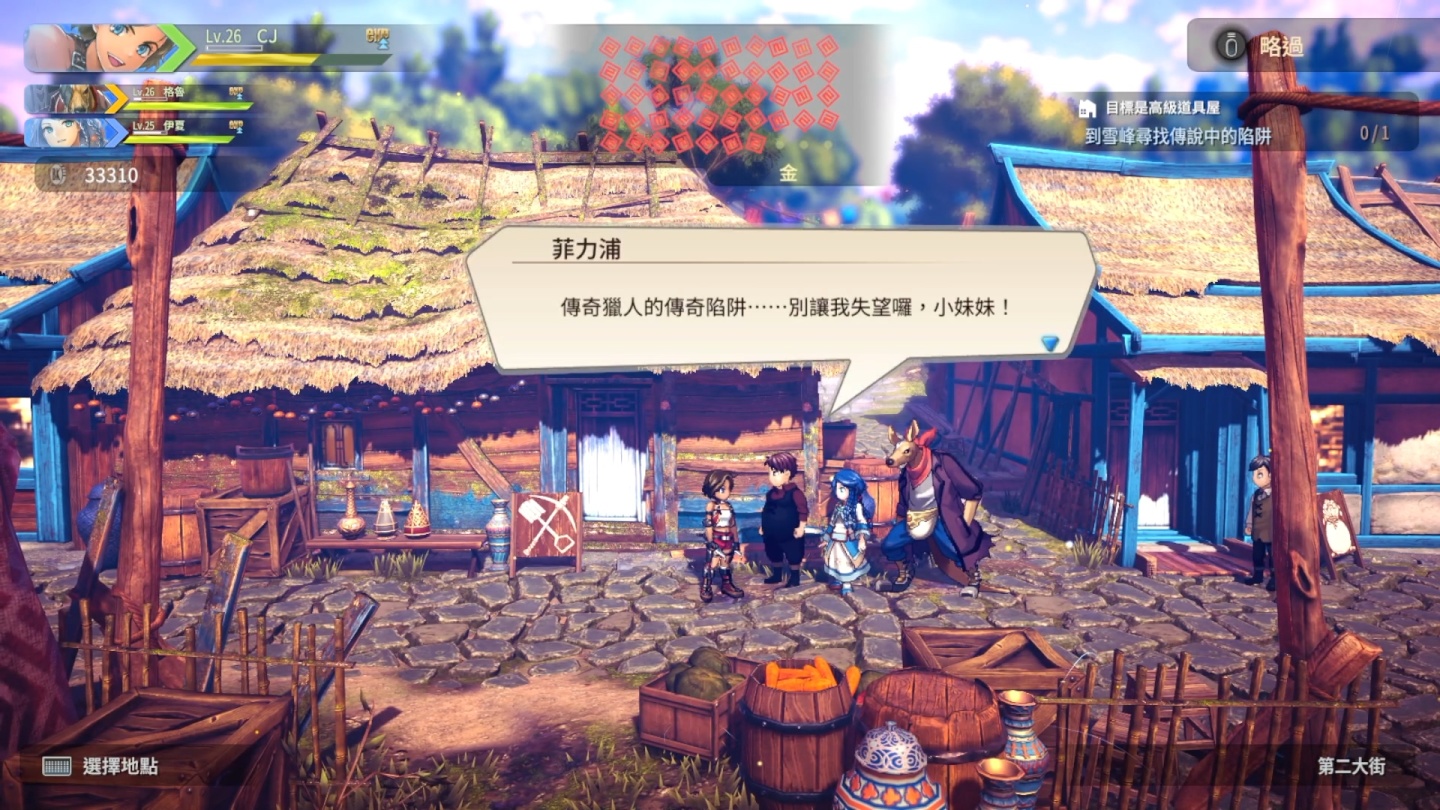 在尋寶主軸之下,CJ、格魯、伊夏各自也有迷人的背景與關係成長,遊戲的逗趣對白在幾小時內就會幫玩家建立起對這三位角色的基礎印象,甚至喜愛上他們,從找貓到撿東西什麼雜事都有、堆滿委託的小鎮鎮民更讓人回憶起傳統日式 RPG 需要「查水表」探訪 NPC 的復古味,加上遊戲色彩豐富的舞台建立,有不少視覺上有趣的角色,但這也是個雙面刃,如果不喜歡大量支線任務與角色強度綁在一起的遊戲設計,遊玩本作會相當痛苦。