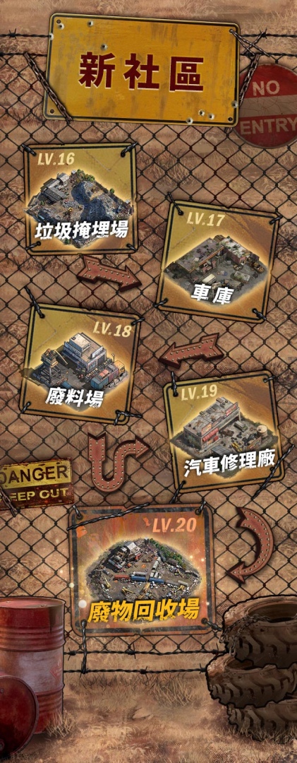 新賽季將新增軍團玩法(Beta 測試版本),可將同伺服器 3 個聯盟打造為一個軍團,透過軍團壯大整體勢力,在新世界中進行爭奪與發展,發展出更多戰術以及合作的可能性;同時開啟全新社區,等級 16 垃圾掩埋場、等級 17 車庫、等級 18 廢料場、等級 19 汽車修理廠、等級 20 廢物回收場,每個社區具有不同的佔領加乘,靠玩家進入後探索獲得更多資訊。