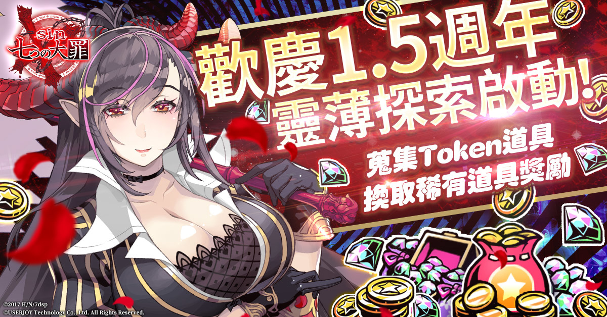 由宇峻奧汀製作發行的「魔王崇拜型計劃」跨媒體作品《sin 七大罪~魔王崇拜~》將於 5 月 12 日更新後推出 1.5 週年慶典各種豐富的福利活動以及全新大富翁系統上線。