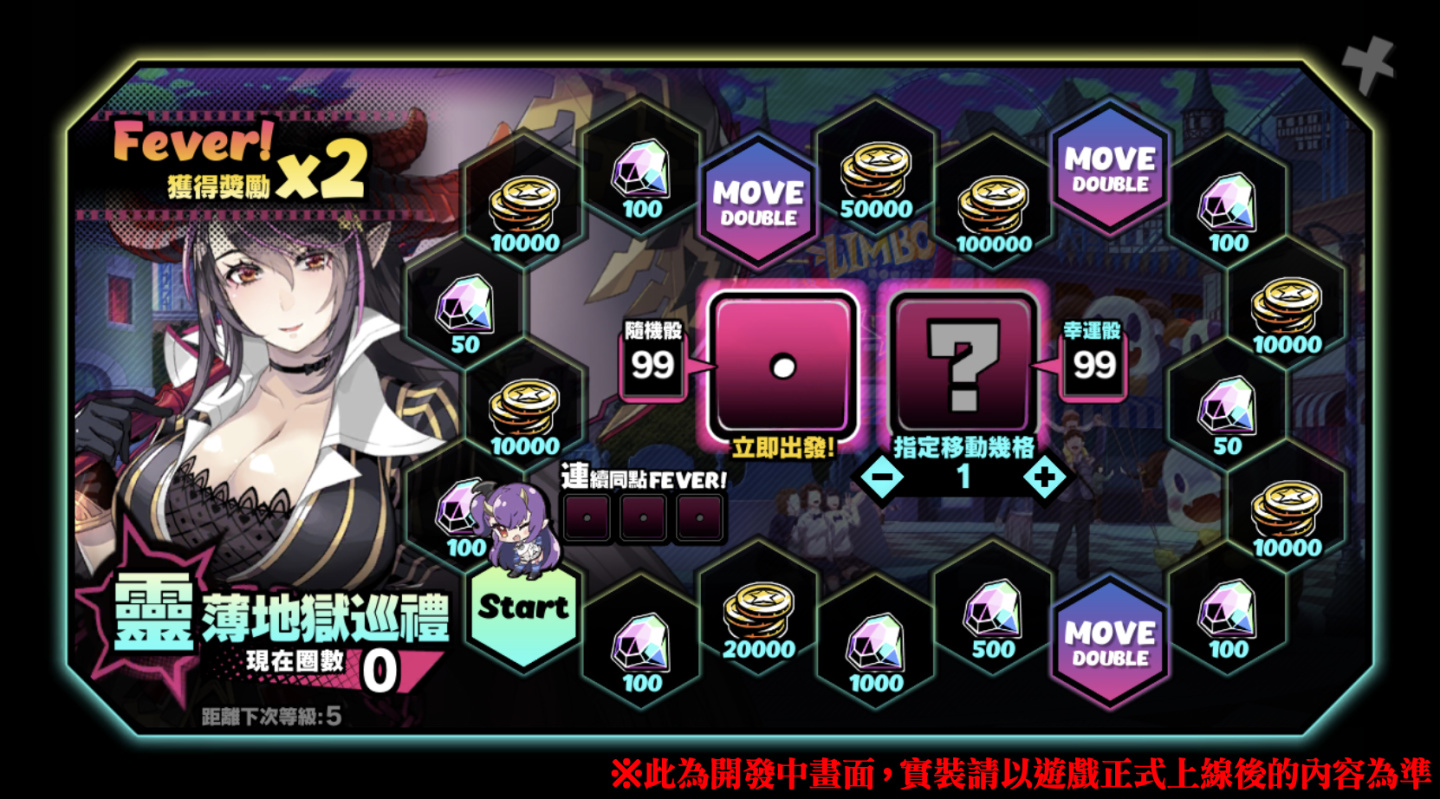 於 5 月 12 日改版維護後至 5 月 26 日維護前,遊戲內將推出全新系統玩法「靈薄地獄巡禮」!該遊戲的玩法即類似我們所熟悉的大富翁玩法與介面,玩家必須透過在遊戲內達成指定條件來獲得骰子,利用獲得的骰子在探索盤面上蒐集豐富的獎勵。