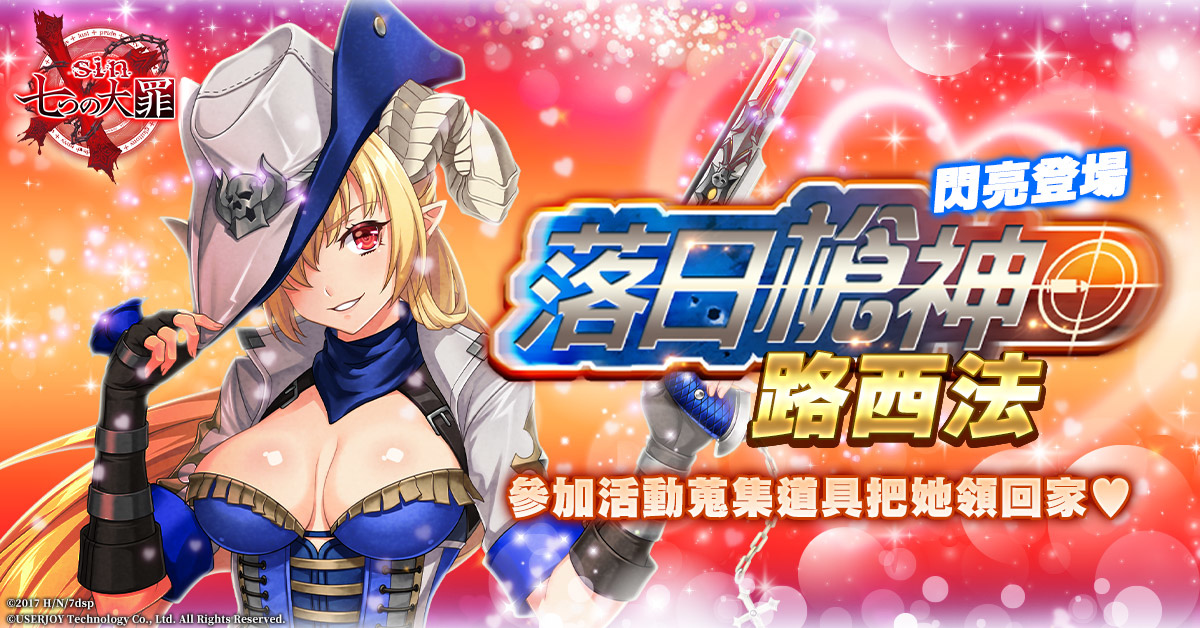 於 5 月 12 日改版維護後至 5 月 26 日維護前,轉蛋池將推出全新的卡池「落日槍神」。玩家可以透過這次的機會入手全新登場的換裝大罪「硝煙瀰漫的星槍・路西法」。
