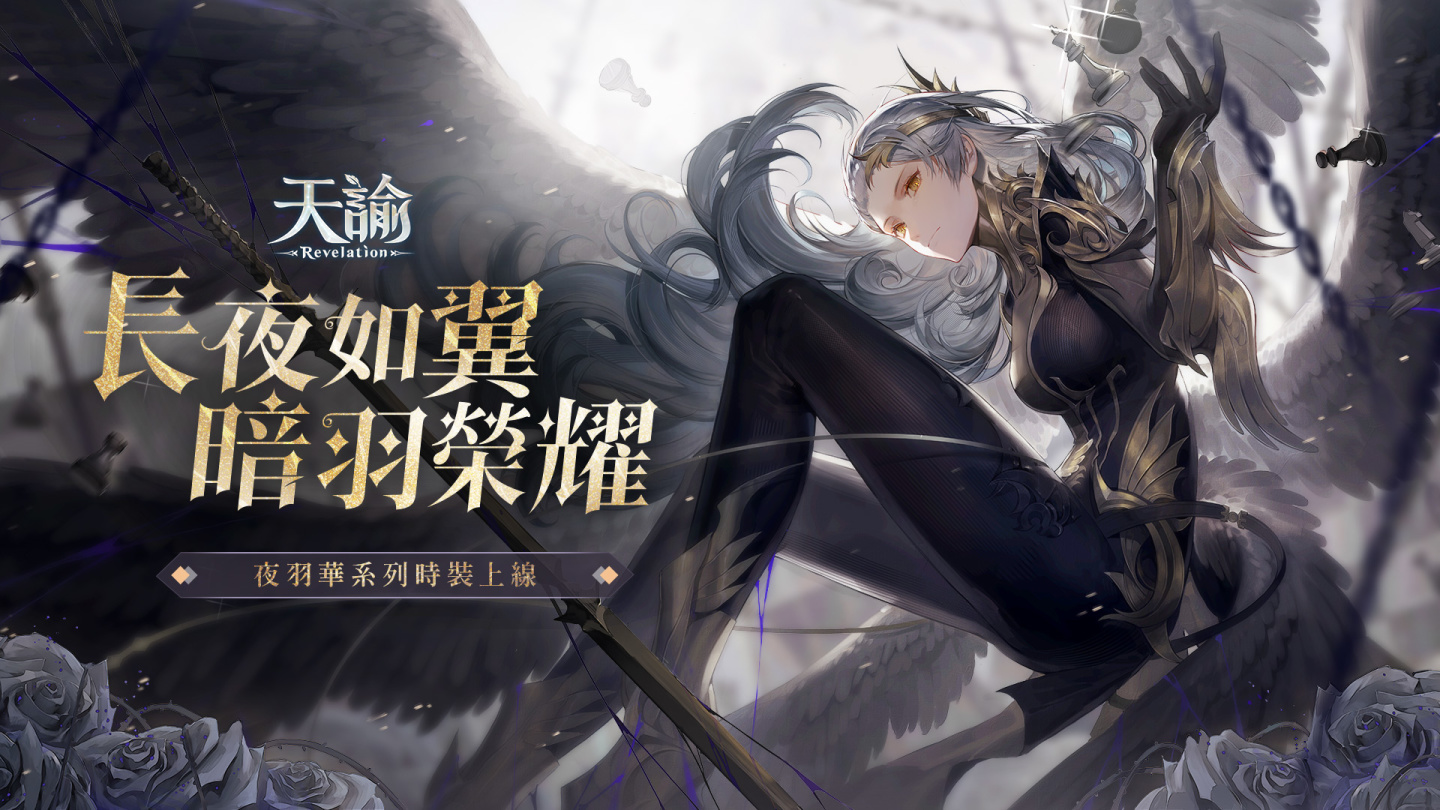 以帥氣的英靈「羽」做為發想,推出「夜羽華」時裝以及多款武器外觀與飾品,藉由暗黑色系打造貼合全身的鎧甲裝,完美勾勒身體線條,顯露絕佳身形。冒險家們還可以累計抽獎次數獲得飾品「面飾‧沉雍鏡瞳」,搭出不一樣的自我風格。