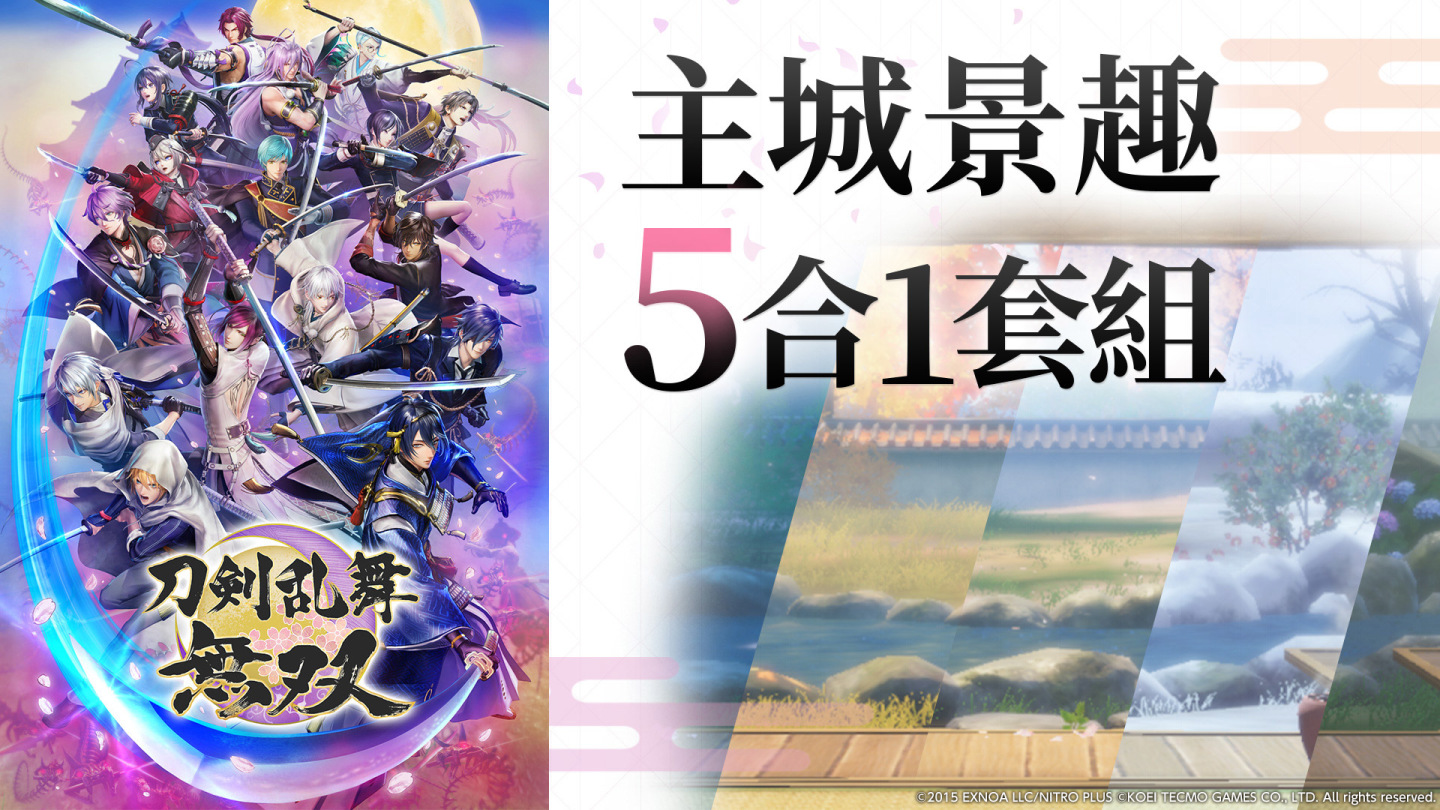 《刀劍亂舞無雙》Steam®版 DLC 包含可改變主城季節的「主城景趣」、將《刀劍亂舞-ONLINE-》5 首 BGM 專為本作改編的 5 首「追加樂曲」、可變更刀劍男士裝束的「內勤風服裝」16 套,能以優惠價格獲得上述所有 DLC 整合包,以及遊戲本體加上述所有 DLC 的 Digital Deluxe Edition,均將於 2022 年 5 月 24 日(二)同時發售。
