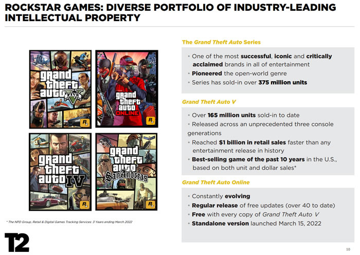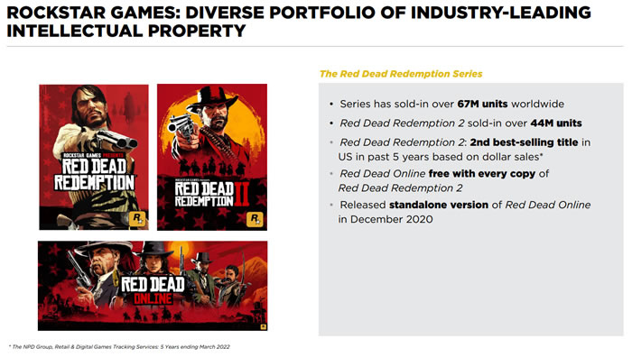 Take-Two Interactive 公開 2022 年會計年度 Q4 業績報告,為玩家們帶來旗下兩款人氣大作《Grand Theft Auto V》(俠盜獵車手V)與《Red Dead Redemption 2》(碧血狂殺2)的最新全球累計出貨銷售數字與玩家們分享。
