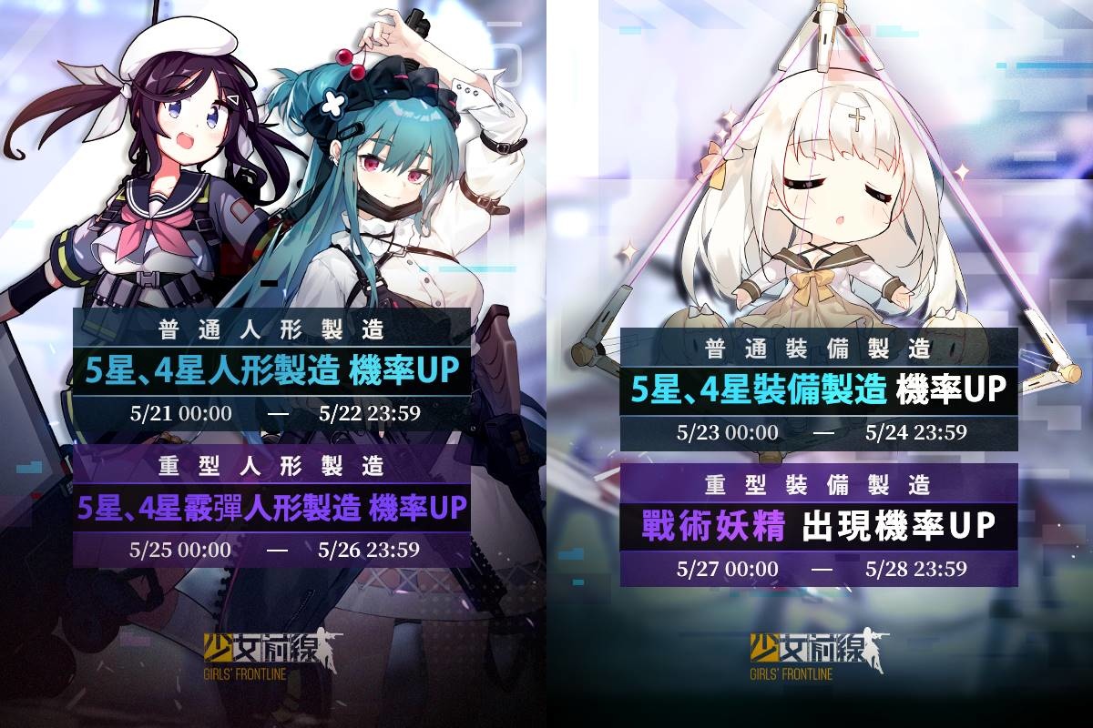 歡慶全球上市 6 周年,遊戲內也舉辦一系列的機率加倍活動,人形製造、重型人形製造、裝備製造、重型裝備製造等機率都將輪流進行提升!也包含使用情報解析時重裝部隊的中樞數據出現機率提升,設定鬧鐘寫行事曆,別錯過這提升戰力的好時機!
