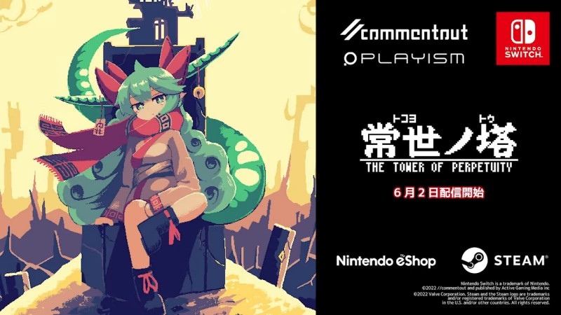 由日本獨立開發者「さえばし」的個人社團「//commentout」所開發,並自 2020 年 11 月起在 Steam 推出搶先體驗版的 2D 動作遊戲《常世之塔 Tokoyo:The Tower of Perpetuity》(常世ノ塔),如今 Playism 正式宣布本作正式版將決定自 6 月 2 日起正式發售,且除了 PC 版外,屆時也將會同步推出 Nintendo Switch 版本發售。