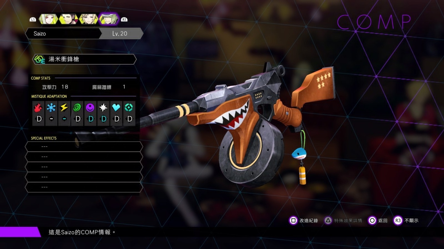 ![]() | COMP:湯米衝鋒槍 隸屬:無所屬 身高:177cm 興趣:高級音響 喜愛的食物:馬賽魚湯 喜歡的地方:常去的酒吧 目前熱衷的事物:佳釀葡萄酒 最近因什麼而笑:跟菲格借的老漫畫 在意的事情:這個任務的報酬金額 生日:3月24日 |