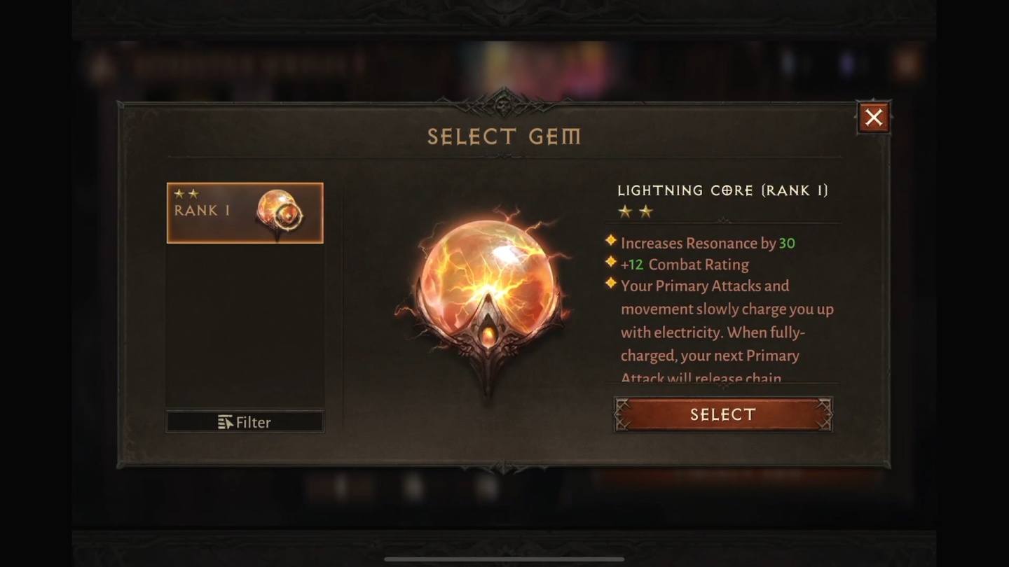 打裝也是《暗黑破壞神》的核心要素,但這裡導入了手遊常見的「戰力」積分設定,裝備除了有稀有度的品質以外,可以強化升級,在道具強化上,有著寶石與裝備的強化等級設定,都需要耗掉大量分解出來的素材,因此階級越高,要農的素材就更多。但強化等級可以隨切換新裝備一鍵轉移,玩家可以大量分解不要的裝備,而系統更會偵測到想拆除的裝備可能比身上穿的好,跳出貼心的警告提示,避免玩家誤拆可能的好裝。