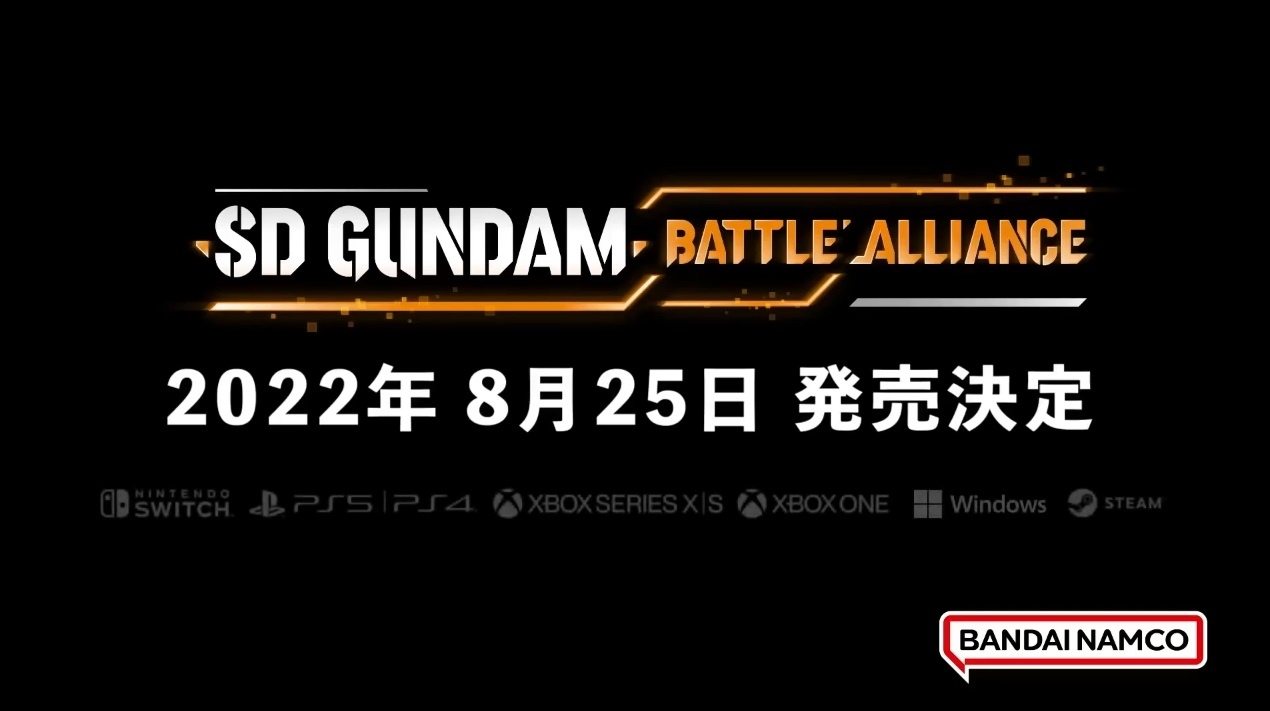 Bandai Namco Entertainment(萬代南夢宮娛樂)預定 2022 年內在 PC/PS5/PS4/Xbox Series X|S/Xbox One/Nintendo Switch 等平台上推出,《SD鋼彈》系列最新的動作 RPG 新作《SD GUNDAM 激鬥同盟》(SD Gundam Battle Alliance/SDガンダム バトルアライアンス),宣佈將決定於 8 月 25 日正式上市,定價普通版 7,980 日圓、豪華版 10,500 日圓、究極版 13,600 日圓。