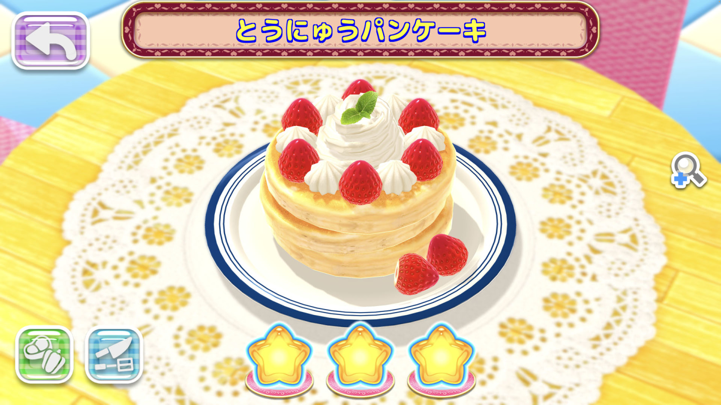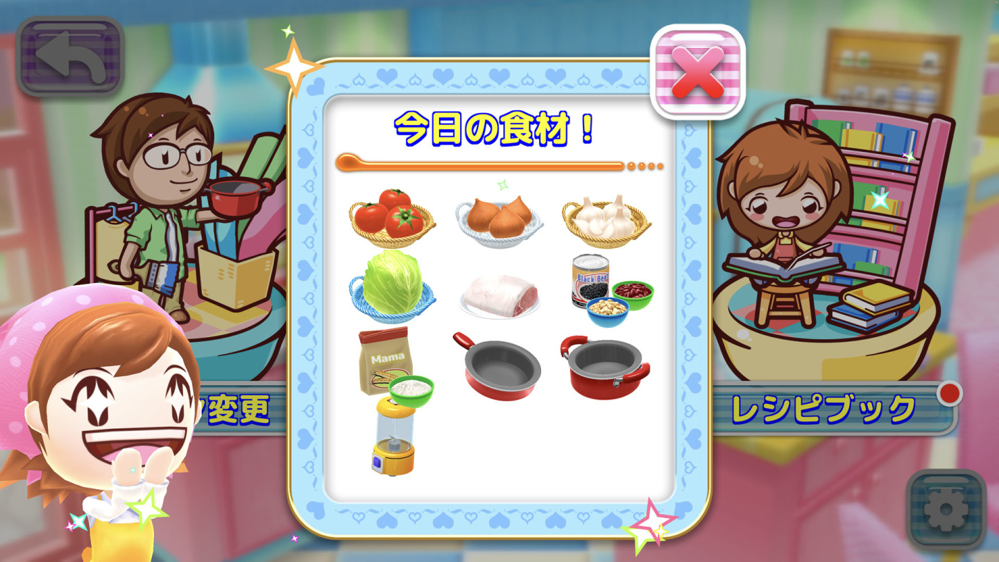 而在料理製作過程方面,包括切菜、燒肉等調理過程,都會跟之前一樣以各種小遊戲形式來進行,玩家可以來輕鬆挑戰,就算失敗也不用擔心遊戲會因此而 Game Over 結束,因為身為本作吉祥物代表人物的媽媽會來幫玩家修正調整,讓玩家可以輕鬆完成自己的料理,作出美味佳餚讓人口水流不停。