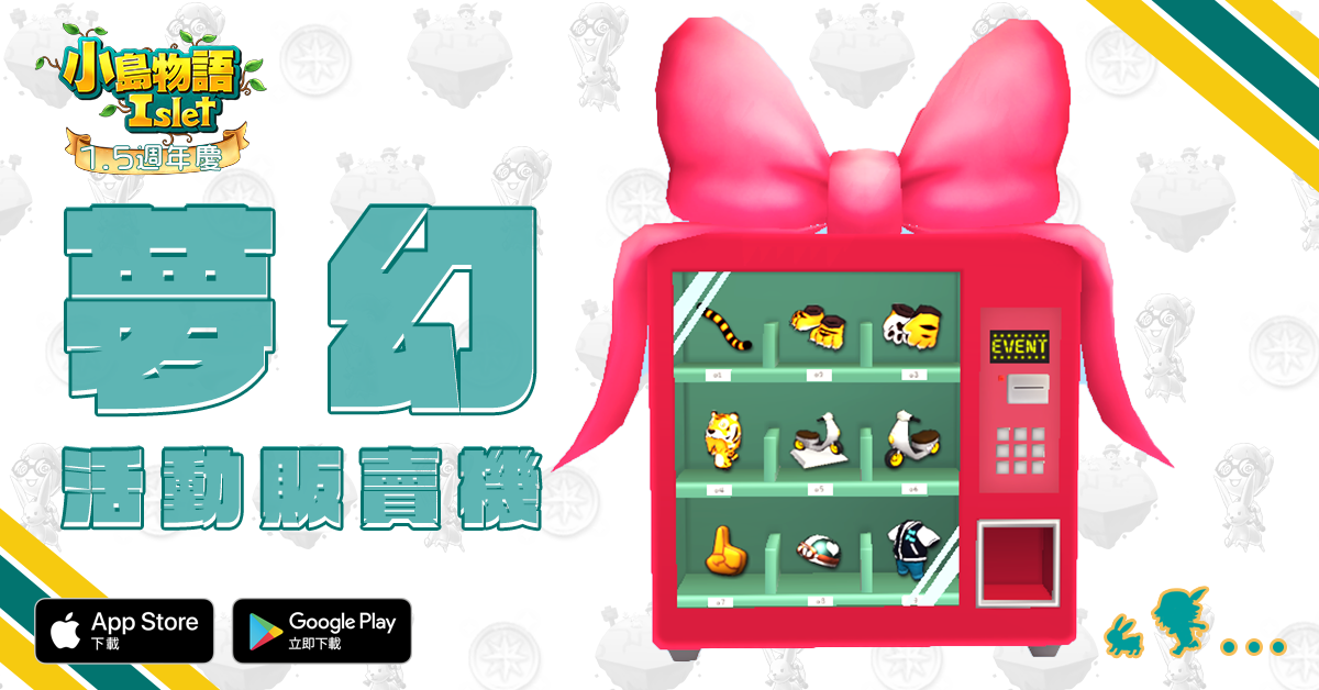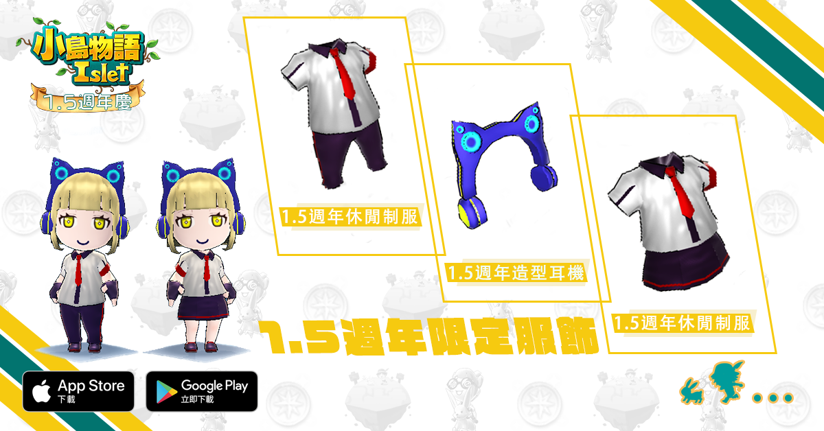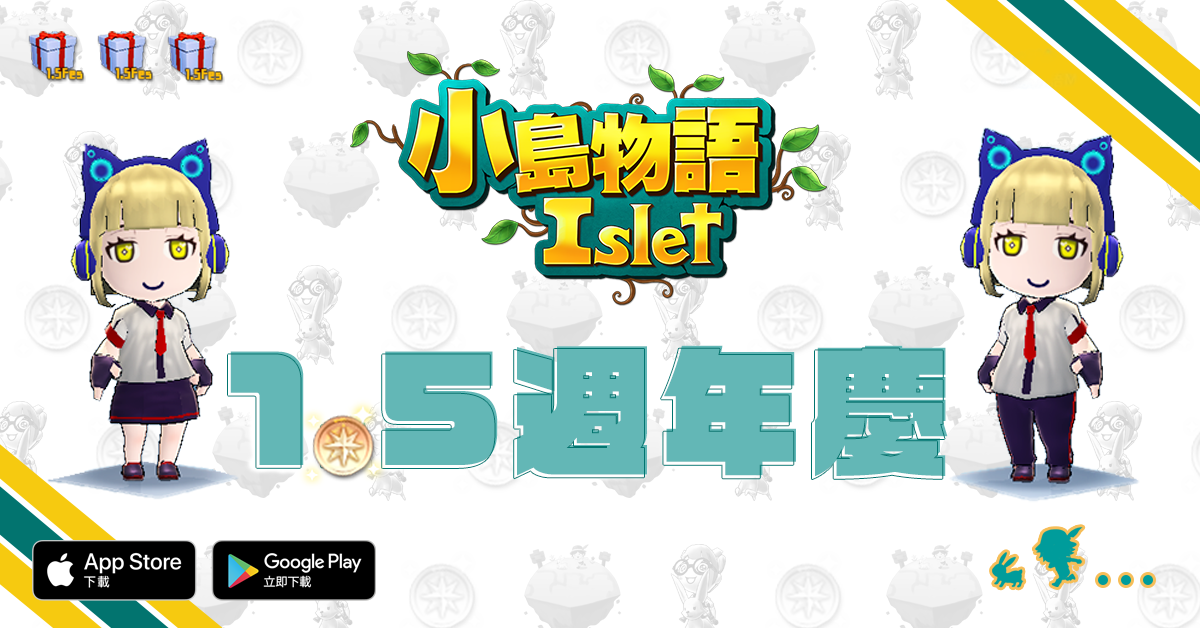 《小島物語》於今日開啟歡慶1.5週年活動,延續受歡迎的「週年硬幣」活動,發行新的「1.5週年硬幣」,玩家們只要參與每日任務或道具製作,都有機會獲得「1.5週年箱子」,打開箱子能機率性獲得各種道具,配合1.5週年的主題,將能獲得「1.5週年硬幣」、「新生皮革書包」、「台灣黑熊布偶裝」等熱門道具。