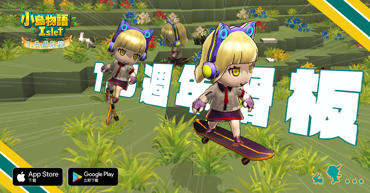 由樂意傳播代理、韓國獨立研發團隊 Morenori Soft 所研發製作的《小島物語》,以隨手都可取得的方塊資源,來擴展村莊的沙盒建設玩法,加上多平台都可銜接遊玩的便利性,廣受玩家們的好評。目前正熱烈展開 1.5 週年活動,發行了「1.5 週年滑板」、「1.5 週年休閒制服」、「1.5 週年造型耳機」等多樣學院風道具,帶領玩家重返校園,共度青春的 1.5 週年。