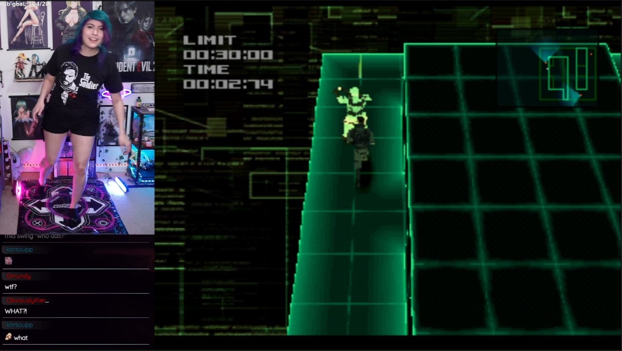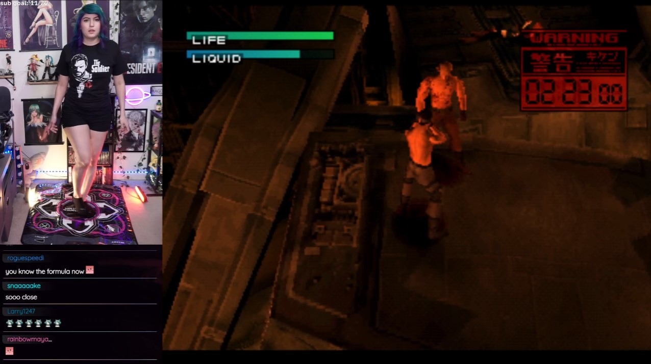 Twitch 實況主利用跳舞墊及驚人的耐力全破了初代《潛龍諜影》(Metal Gear Solid)。本名 Lilly 的實況主「KittyRawr」三周前展開挑戰,在每次實況之間稍作休息為下次準備。接受 GamesRadar 訪談時,她表示本作會成為在構思挑戰時的選擇,是因為她從小就看著自己的兄弟在玩《潛龍諜影》,所以這也成為了她最喜歡的遊戲系列之一。
