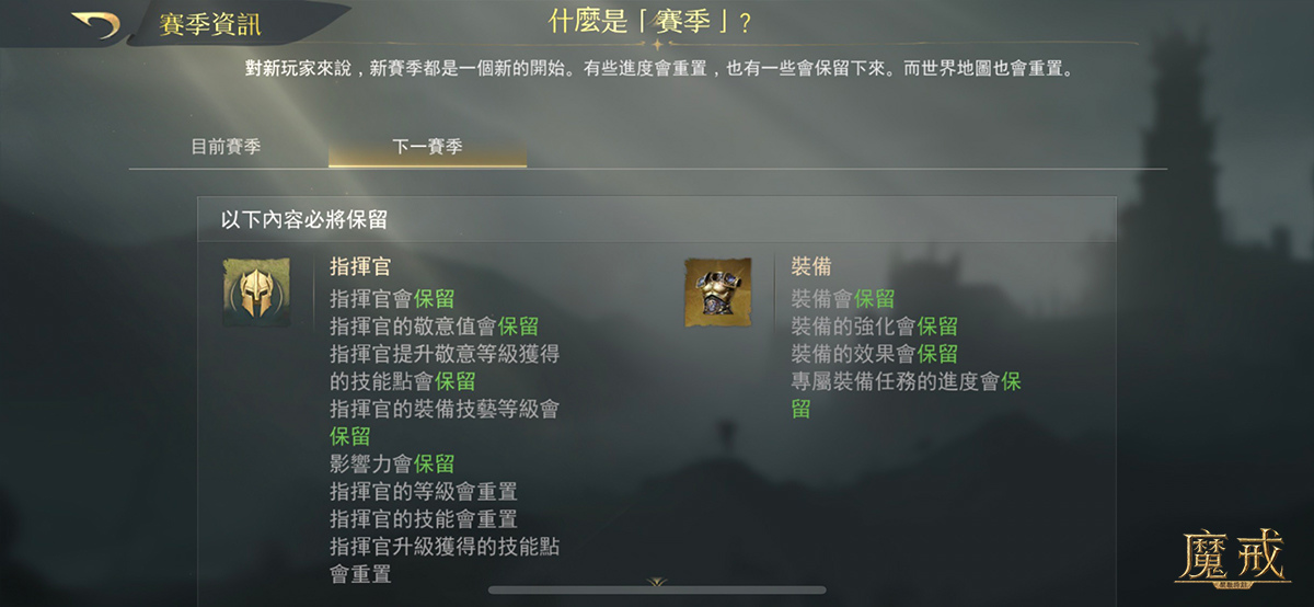 ‧ 賽季結算:當賽季結算後,所有賽季目標將不可再改變,因此即使重新爭奪魔戒也無法獲得賽季目標的獎勵。