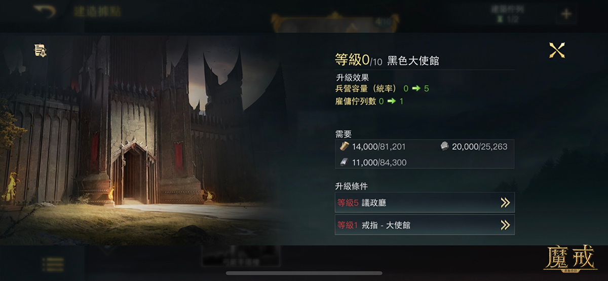 黑色大使館能讓黑暗陣營的預備兵進入兵營