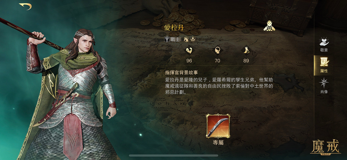 角色介紹:精靈-愛拉丹,高顏值外貌的同時還擁有強大的戰鬥能力,他是愛隆的兒子,愛羅希爾的孿生兄弟,他在魔戒之戰期間已經2888歲,是精靈和人類的偉大盟友,他幫助魔戒遠征隊和善良的自由民挫敗了索倫對中土世界的邪惡計畫。