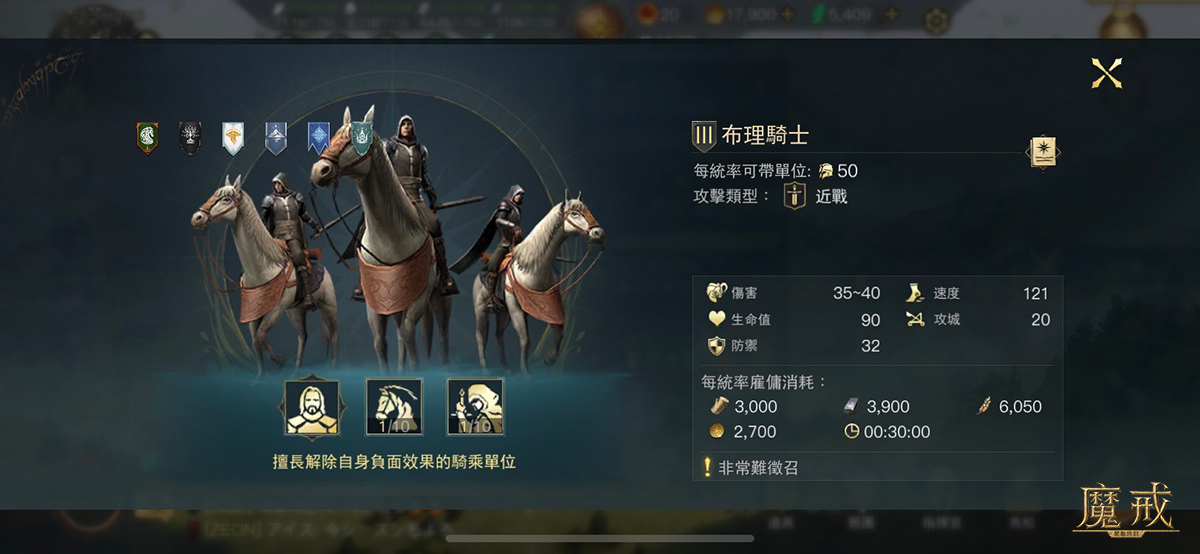 2.布理騎士:擅長解除自身負目效果的騎乘單位。