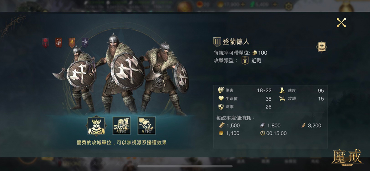 1.登蘭德人:優秀的攻城單位,可無視派系援護效果。